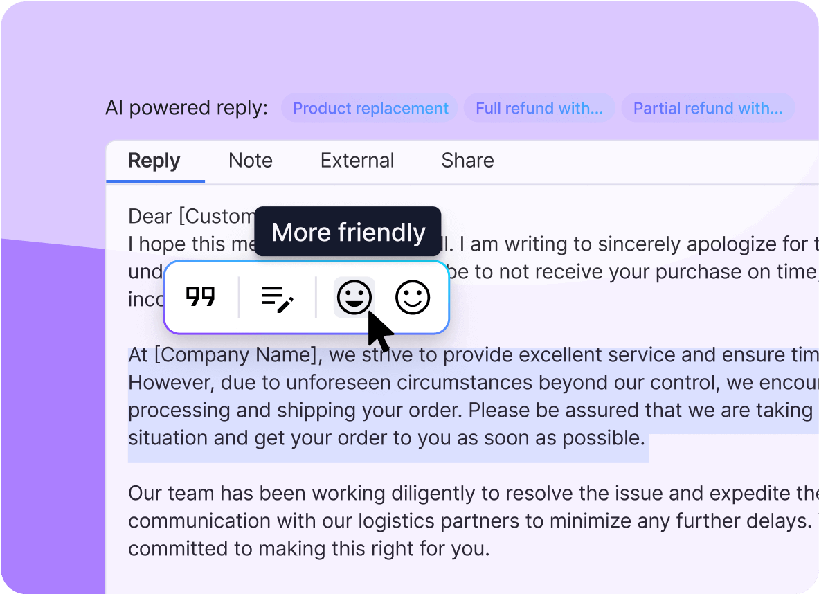 - Collaborate with other agents and external third parties such as a fulfillment service or supplier centrally in the eDesk ticket for efficient resolution.